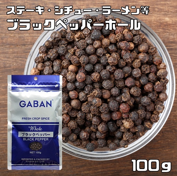 ブラックペッパーホール 100g GABAN ギャバン (メール便)スパイス 香辛料 粒 シード 業務用 黒胡椒 Black pepper こしょう