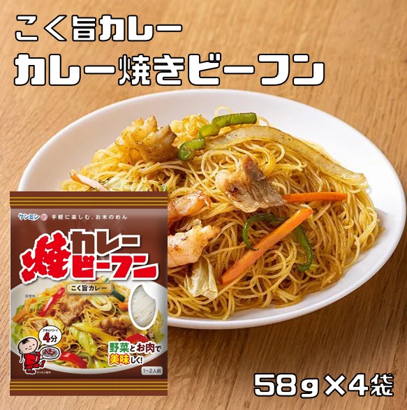 即席焼ビーフン 幻のカレー味 58g×4袋 ケンミン (メール便)米麺 家庭用 簡単 インスタント 調理時間4分 ノンフライ 即席麺