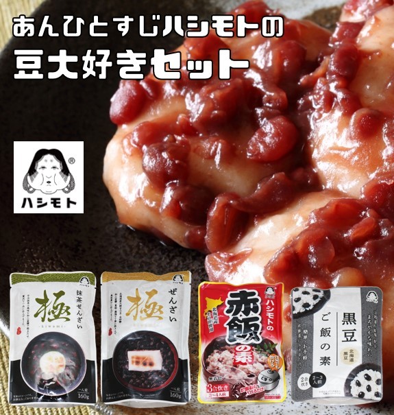 豆大好きセット 4品詰め合わせ (メール便) あんひとすじハシモトの 赤飯の素 黒豆ご飯の素 ぜんざい 抹茶ぜんざい 橋本食糧
