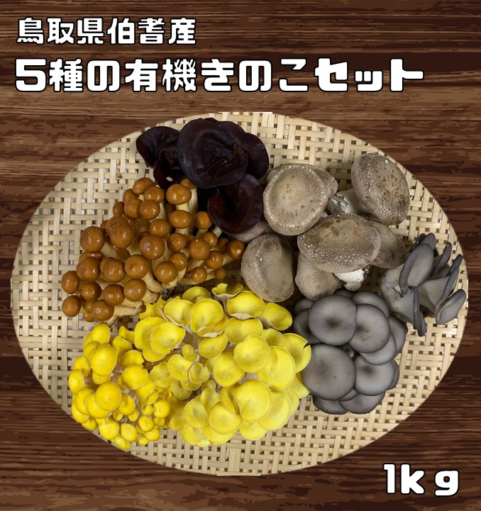 有機栽培きのこセット 1Kg 鳥取県伯耆産 食べチョク 伯耆のきのこ 椎茸 木耳 平茸 なめこ タモギタケ 有機JAS 無農薬 詰め合わせ 産直