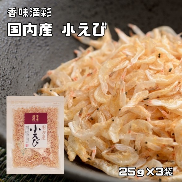 小えび 25g×3袋 国産 香味満彩 (メール便)小エビ 小海老 こえび 乾物 乾燥えび 干しえび 素干し 海産物 干し海老 アキアミ 粉もの