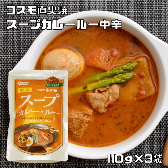 スープカレー・ルー 110g×3袋 中辛 コスモ直火焼 (メール便)コスモ食品 フレーク 粉末 カレールウ 国内製造 こだわり 高級 カレー粉