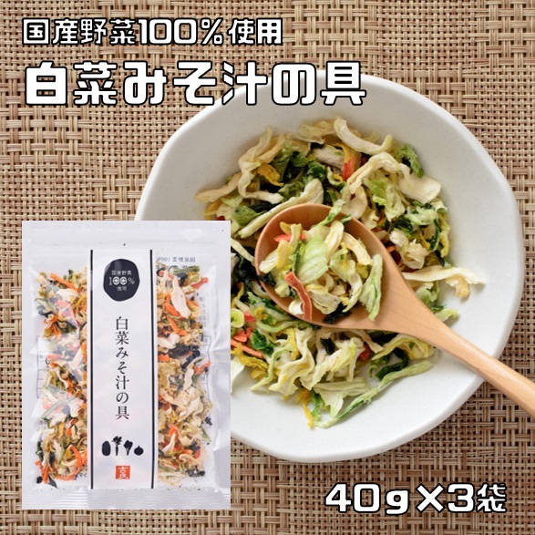 白菜みそ汁の具 40g×3袋 国産 乾燥野菜 (メール便)干し野菜 国内産 乾物 便利野菜 備蓄 非常食 味噌汁の具 簡便野菜 ハクサイ