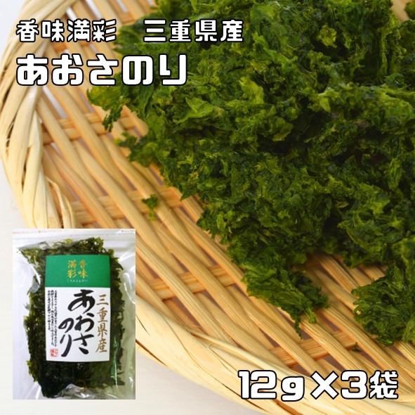 あおさのり 12g×3袋 三重県産 香味満彩 あおさ海苔 国産 国内産 アオサ 乾物 乾のり 原藻 青さ海苔 海産物 干し海苔 青海苔