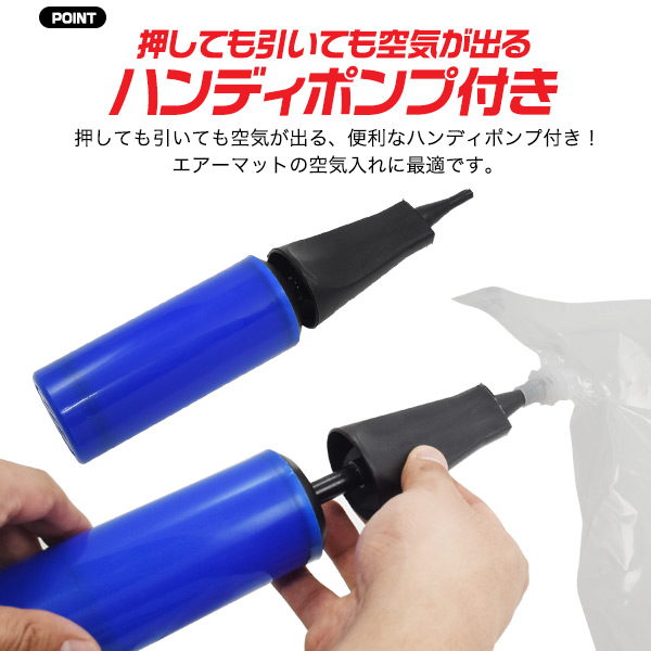 押しても引いても空気が出る、便利なハンディポンプ付き!エアーマットの空気入れに最適です。