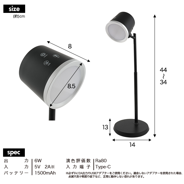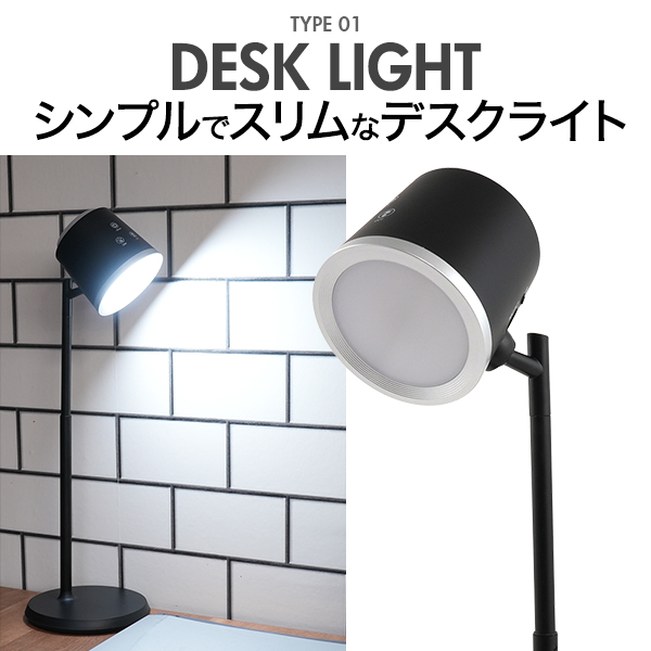 充電式 LEDデスクライト ランプ型 3種光色 角度調整 無段階調光可能 LED照明 スポットライト 間接照明 照明器具 黒色 白色 インテリア 寝室 オフィス 勉強机