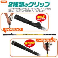 正しい握り方の練習ができるガイドグリップと、スイング練習に最適なノーマルグリップの2種類のグリップが使える、ダブルグリップスイングトレーナー。