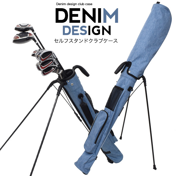 ゴルフ セルフスタンド ゴルフクラブケース デニムデザイン スタンド付き 男女両用 撥水加工生地素材 ゴルフバッグ キャディーバッグ クラブケース