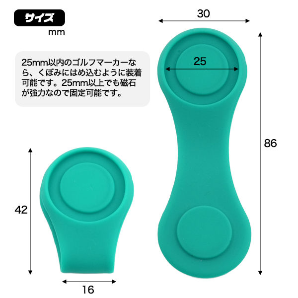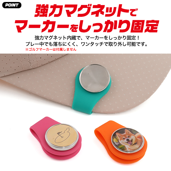 ※鉄製、または内部に鉄が含まれているゴルフマーカーをご使用ください。 マグネットに反応しない素材のマーカーは装着できません。