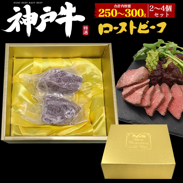 神戸牛 極上 ローストビーフ 合計約250〜300g(2〜4個セット) 神戸牛肉 モモ肉 黒毛和牛 ブロック肉 燻製 真空加熱 ギフトボックス入り 熨斗対応可能 冷凍配送