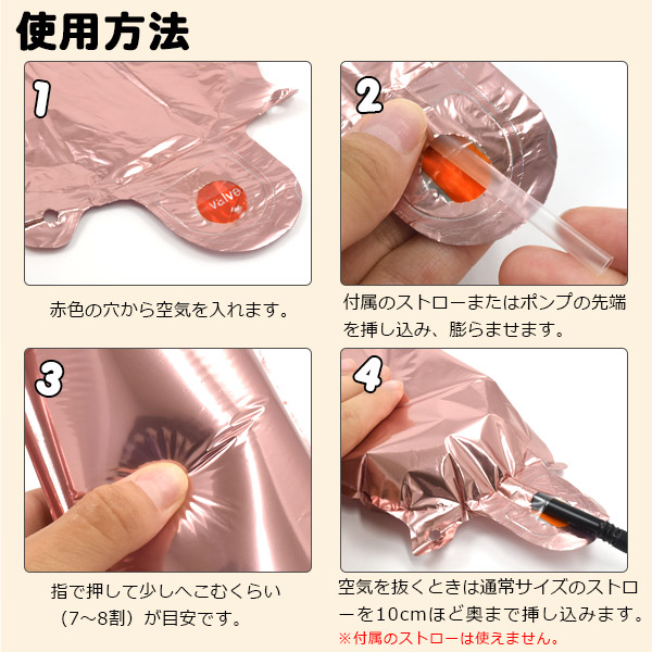 ※空気を抜くときは、通常サイズ(20cm程)のストローをご使用ください。付属のストローでは短く、逆止弁に届かず空気が抜けません。