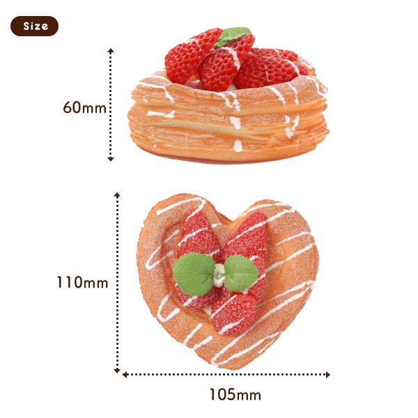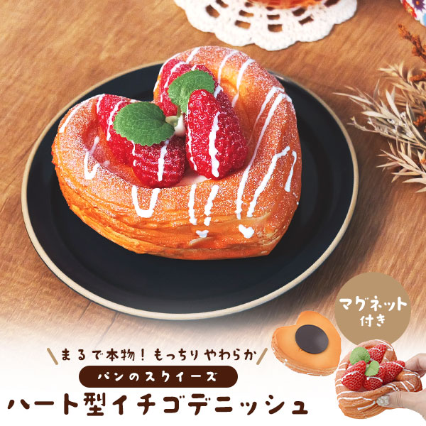まるで本物のような、ハート型イチゴデニッシュのスクイーズです。