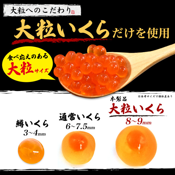 海外産や鱒子とは違い、北海道産「鮭子」のいくらを使用しています。