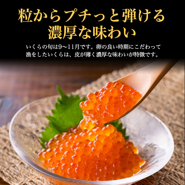 卵の良い時期にこだわって漁をしたいくらは、皮が薄く旬ならではの濃厚な味わいです。