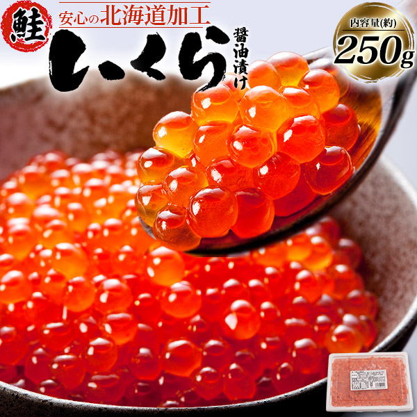 鮭いくら 醤油漬け チャム イクラ 約250g 1パック 北海道加工 いくら醤油漬け 高級食材 海鮮 正月 おせち料理 御祝 いくら丼 ちらし寿司 ご家庭用 冷凍配送
