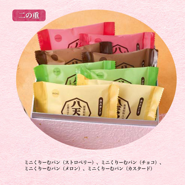 ミニくりーむパン(ストロベリー)、ミニくりーむパン(チョコ)、ミニくりーむパン(メロン)、ミニくりーむパン(カスタード)
