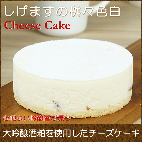 レアチーズとスポンジの2層で構成されたこのケーキ。老舗酒蔵の酒粕を使用した大人のチーズケーキです。
