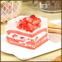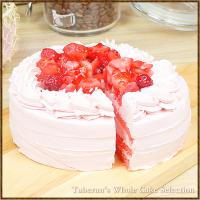 ピンク色の姿が、非常に可愛らしいこのケーキ。その色の正体は、もちろん、いちごです。いちごの果肉、クリーム、そして生地にもいちごを使用した、まさに、いちごづくしのデコレーションケーキです。