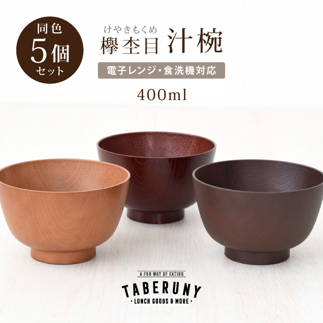欅(けやき)の木目を再現した樹脂製汁椀。