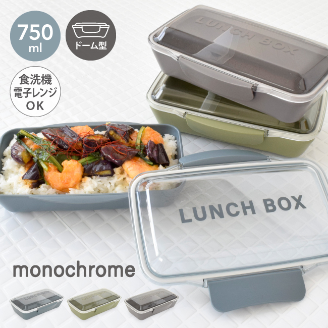 弁当箱 おしゃれ 大容量 男性 一段 スリム メンズ 大人 男子 高校男子 子供 レンジ対応 食洗機 仕切り モノクローム ドーム 1段 ランチボックス 750ml 31031