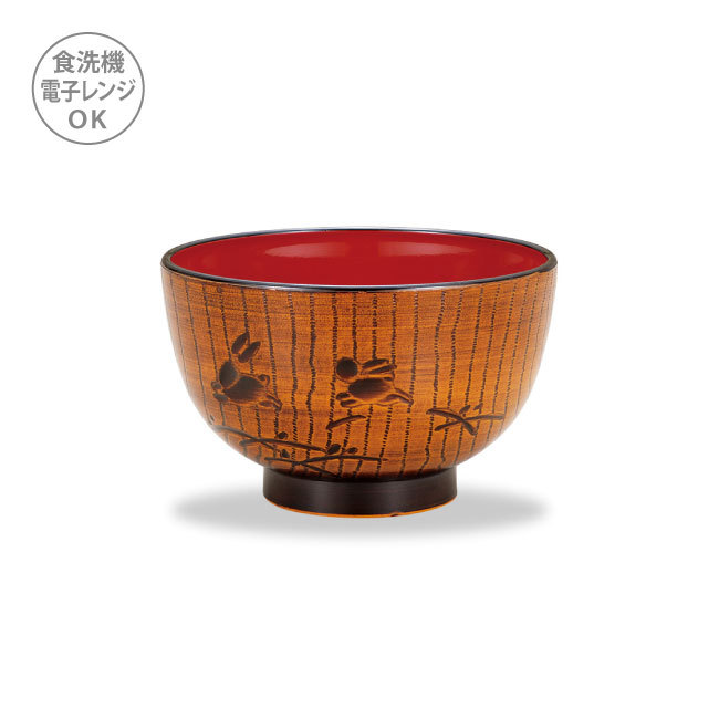 【在庫限り】お椀 食洗機対応 電子レンジ対応 おしゃれ 味噌汁 食洗機 収納 日本製 おわん 和風 うさぎ (レンジ 木目 うさぎ 彫 汁椀 黄杢 81053)