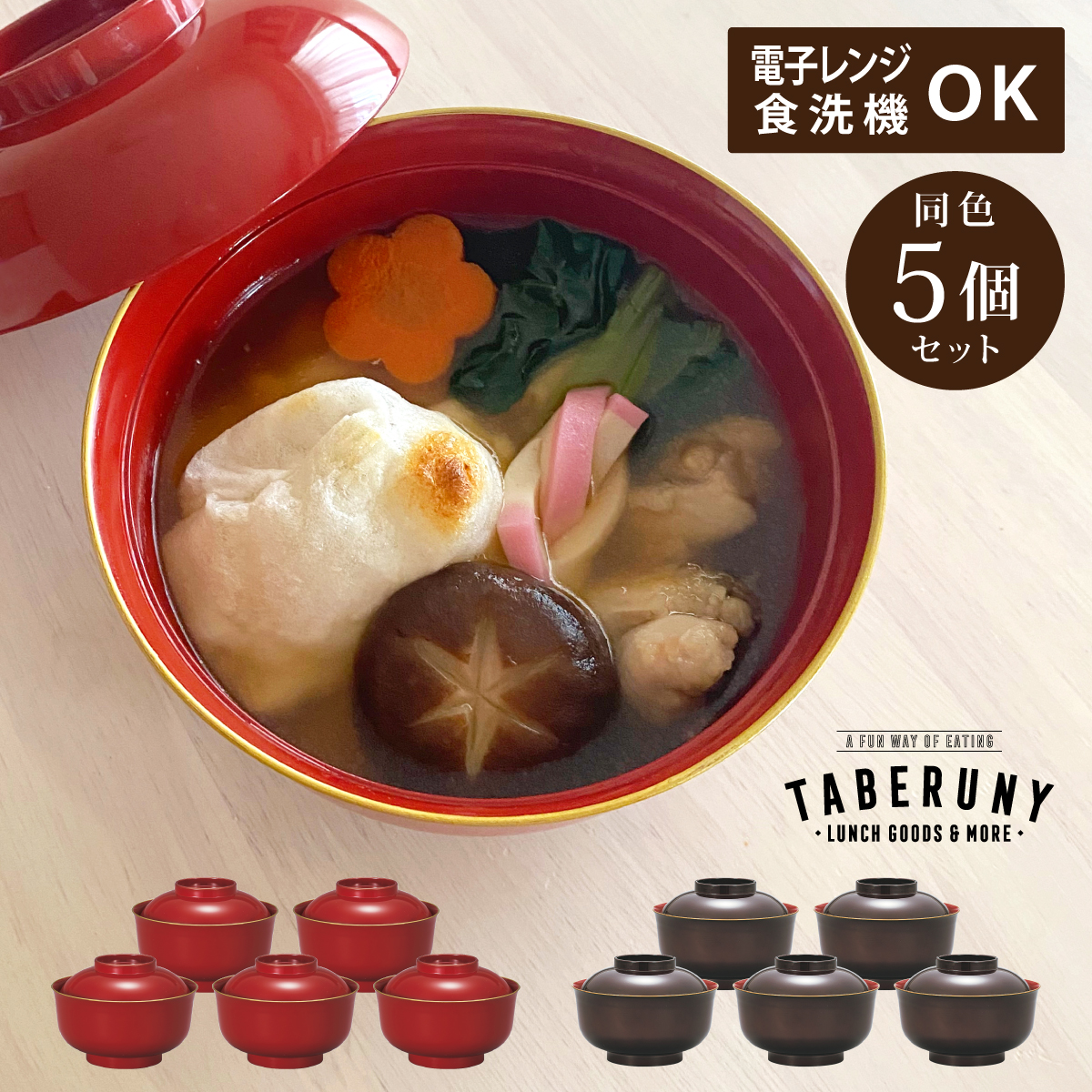 お椀 食洗機対応 おしゃれ フタ レンジ対応 おわん 大きい 迎春 お正月 お祝い おもてなし 汁椀 食器 日本製 和風 (羽反 雑煮椀 渕金塗 5個 セット 82641)