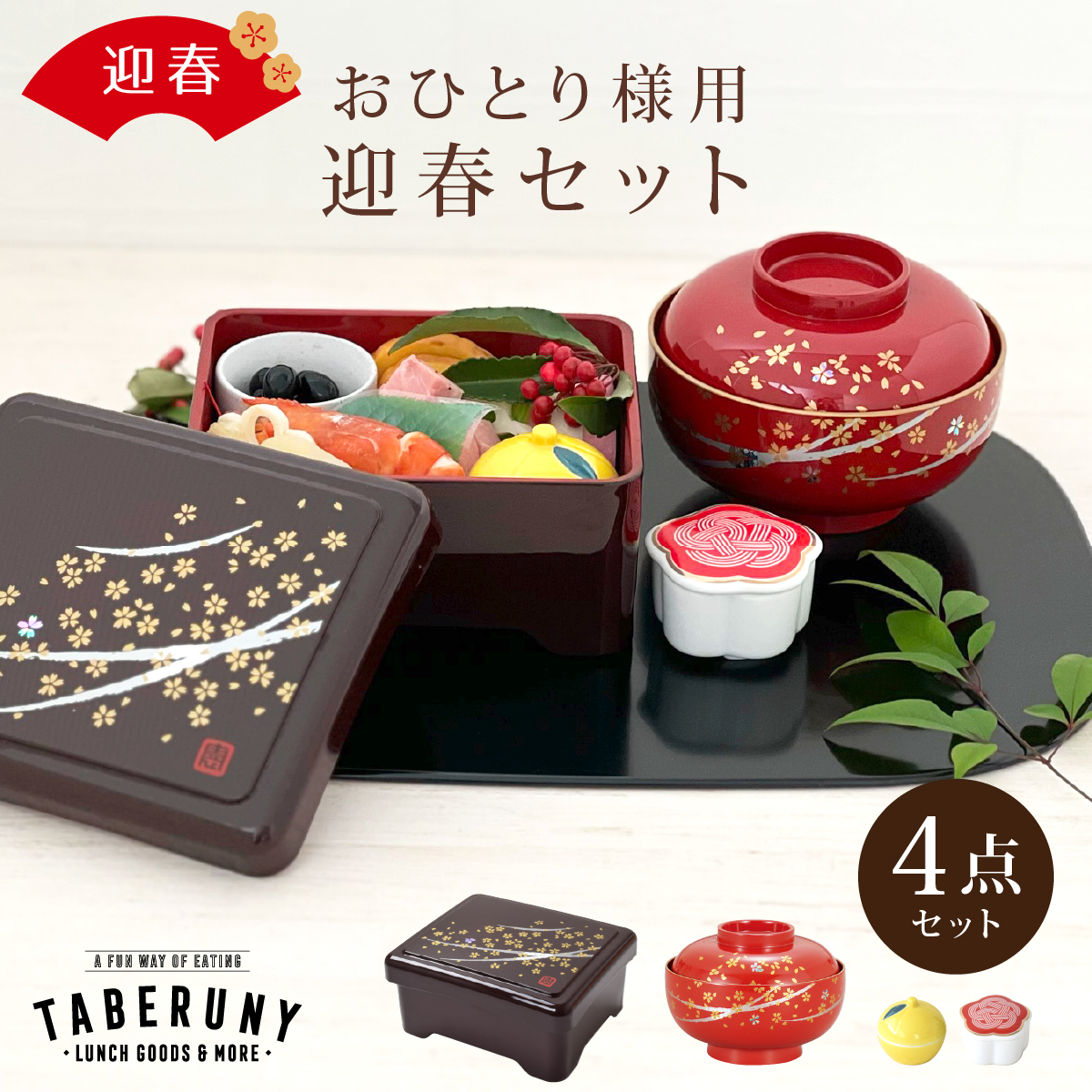 うな重 重箱 1段 食器 1人用 銘々盛 雑煮椀 蓋付椀 汁椀 ゆず あわじ 珍味入 お正月 おせち ハレの日 (おひとり様用 迎春 4点 セット 17306/83251/15554/15571)
