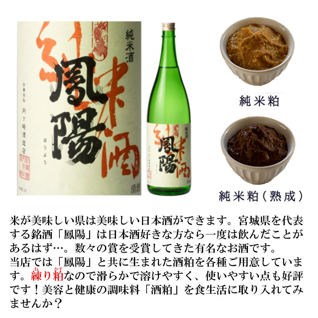 宮城県最古の造り蔵 創業寛文元年(1661年)宮城の地酒「鳳陽(ほうよう)」創業350有余年・伝統・革新の酒蔵が作り出した特級の酒粕をお届けします。
