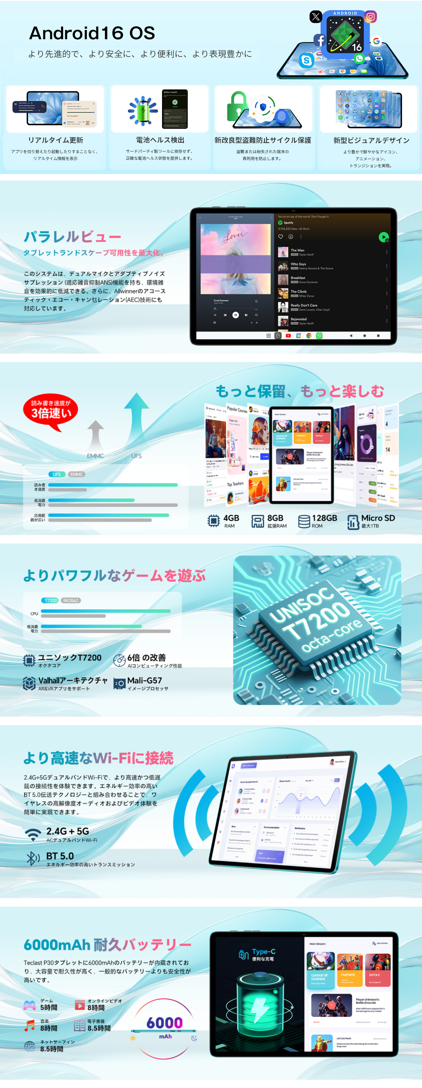 【Android16!高スペック Wi-Fiモデル】★ タブレット 128GB 顔認証 GPS 10インチ 本体 タブレットpc wi-fiモデル GPS TECLAST 12/8迄