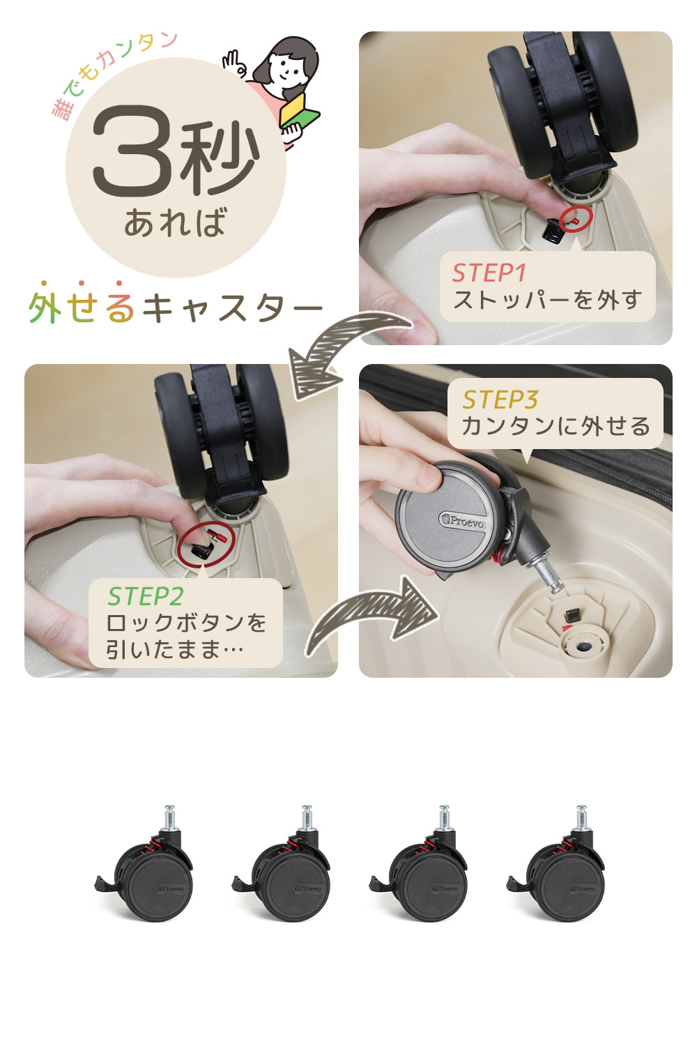 [8,800円~] スーツケース キャリーケース ss s lm lサイズ ストッパー 拡張 軽量 機内持ち込み 交換用キャスター ブレーキ 静音 大容量 旅行 修学旅行 Proevo
