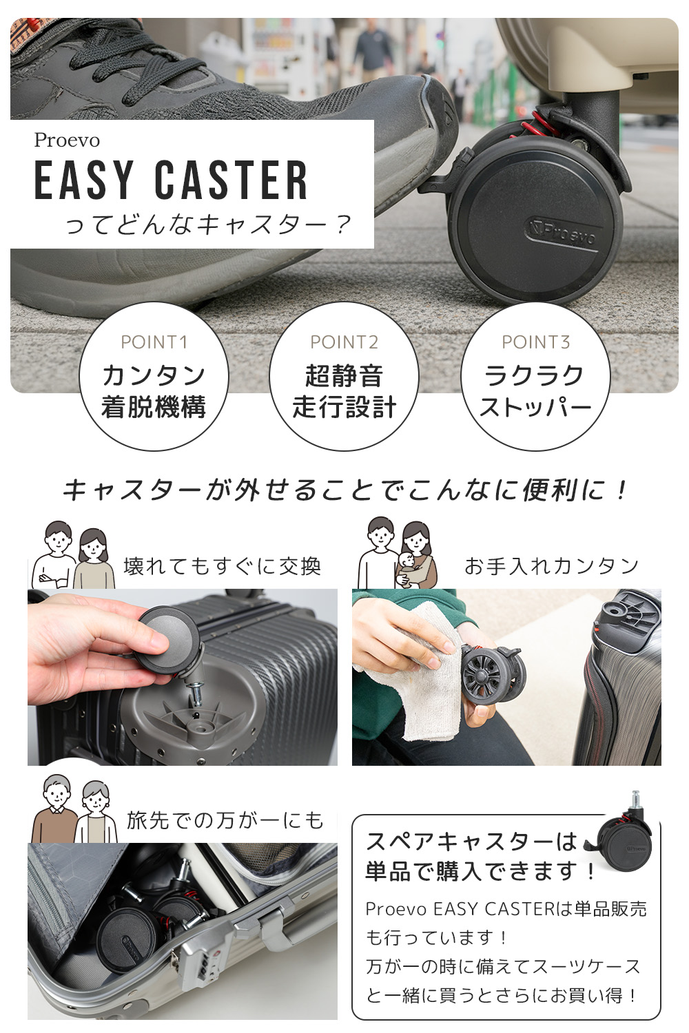 スーツケース キャリーケース キャリーバッグ ブレーキ ストッパー 交換キャスター 取り外し YKKファスナー 機内持ち込み 機内持込 s ss コンパクト 軽量 LCC 格安航空 1泊 拡張 おしゃれ 旅行 出張 ビジネスキャリー ブランド proevo プロエボ