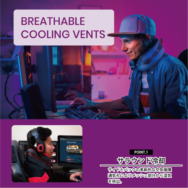 メッシュ構造で通気性抜群。汗などに強い吸湿発散性の生地でずっと快適。首の太さに合わせてフィットするように調節可能です。