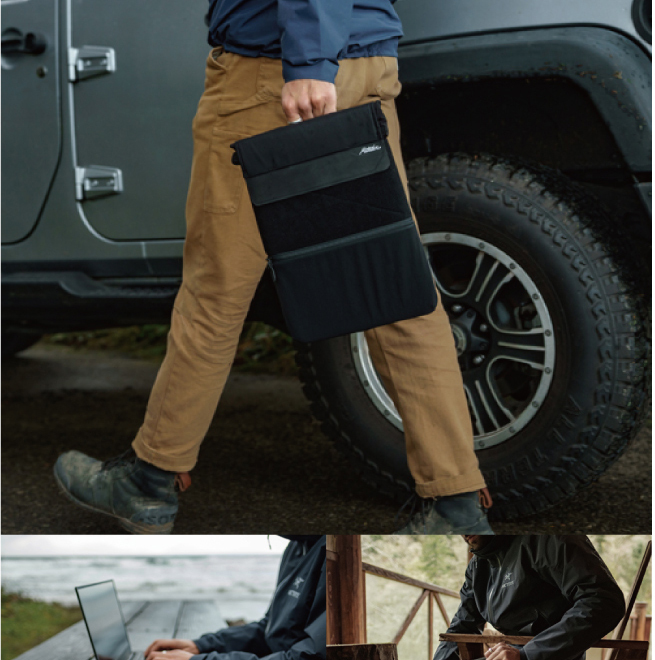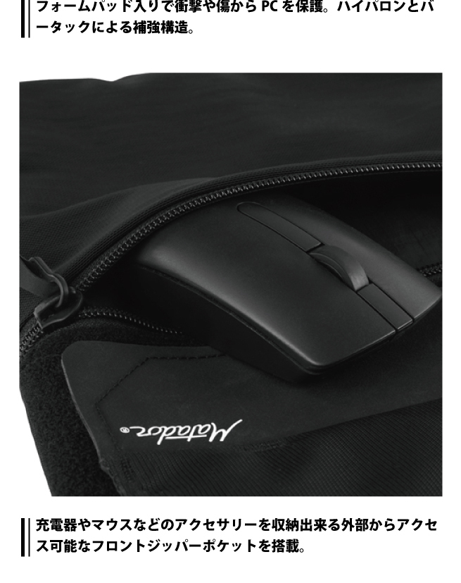 ・充電器やアクセサリーを収納できる外側のジッパーポケット