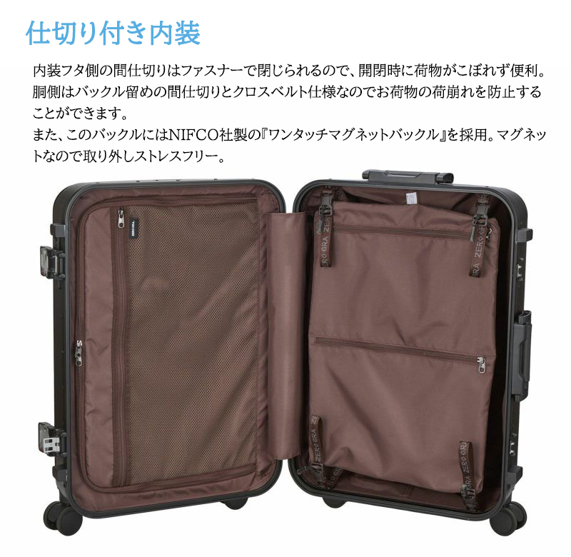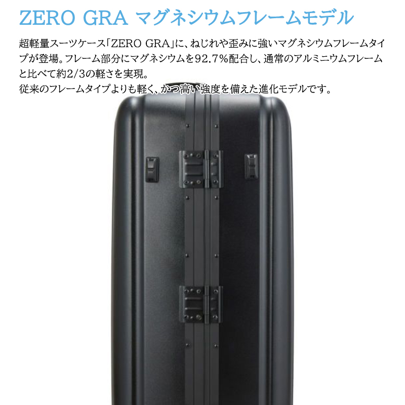 ゼログラ ZERO GRA ZER1160-57 53L 超軽量マグネシウムフレーム スーツケース Mサイズマグネシウムフレーム×ポリカーボネート100%、フレームタイプなのに超軽量なZERO GRAスーツケース超軽量スーツケースシリーズ