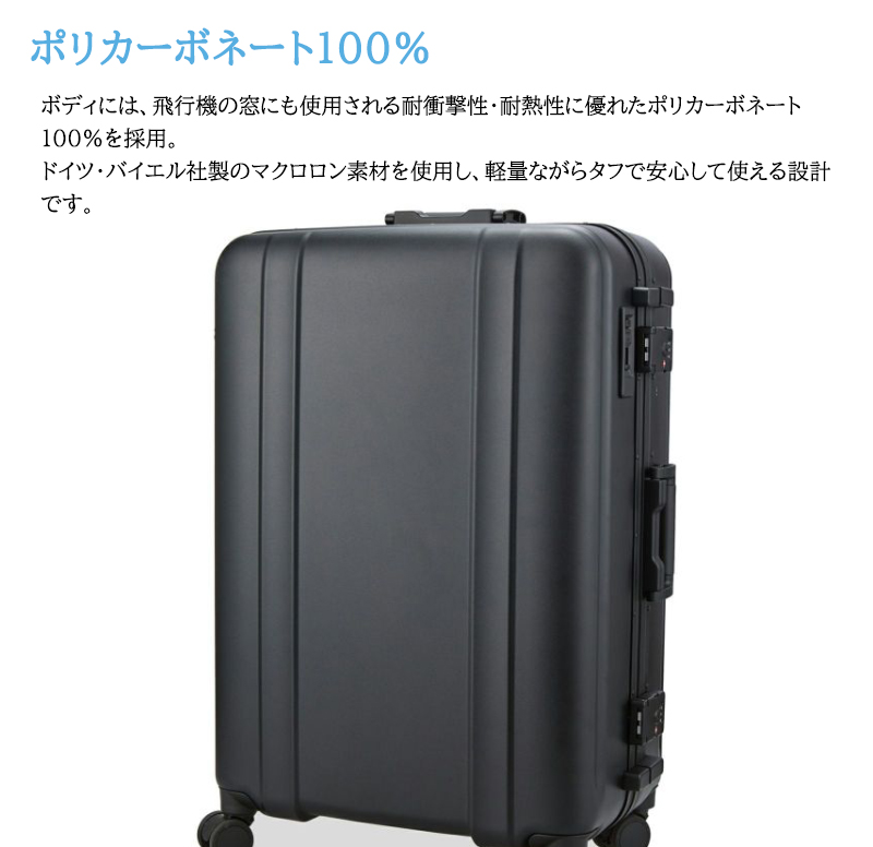 キーワードZERO GRA ゼログラ スーツケース マグネシウムフレーム Mサイズ 超軽量 53L ポリカーボネート100% マクロロン HINOMOTO 静音ストッパーキャスター ダブルキャスター ダイヤルロック TSロック ZER1160-57 キャリーケース 旅行 出張 ポイント消化
