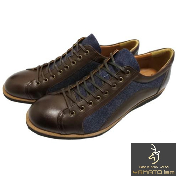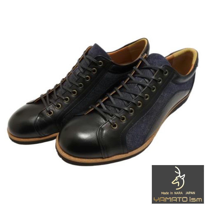倭イズム YA3310 ブラック 岡山デニム×兵庫レザーカジュアルシューズ 送料無料 ヤマトイズム 倭ism メンズシューズ 短靴 スニーカー 幅広ワイズ3E 牛革 デニム