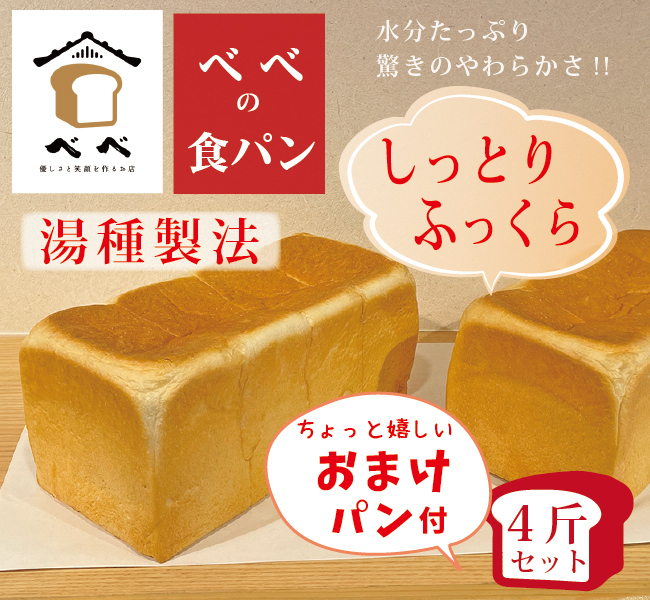 食パン 4斤セット べべの食パン 湯種製法 食パン人気店 しっとり ふっくら 冷凍パン パンセット おとりよせ ギフト