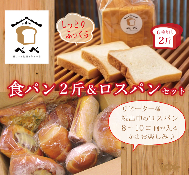 べべ 食パン 2斤と ロスパン セット パン詰め合わせ 冷凍パン ふわふわ食パン パン取り寄せ 人気パンセット