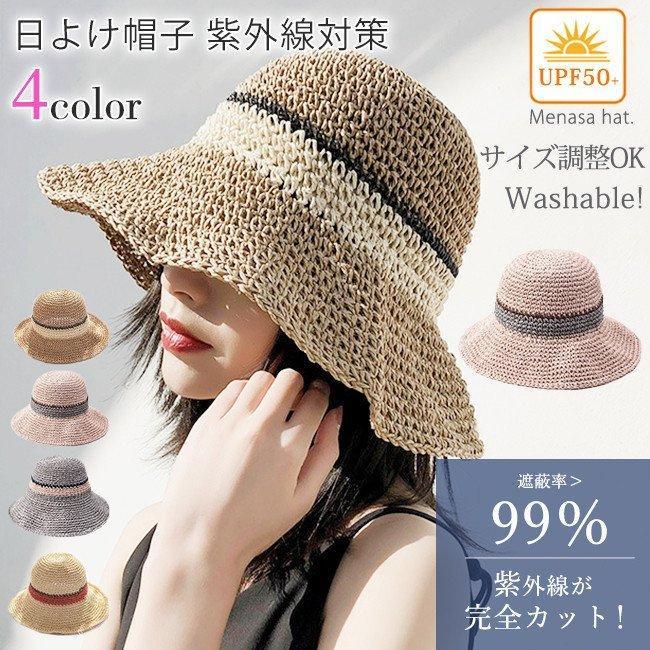 麦わら帽子 レディース 配色 つばワイヤー入り サイズ調整可 折りたたみ 日よけ帽子 ペーパーストローハット おしゃれ uvカット 春夏 リゾート