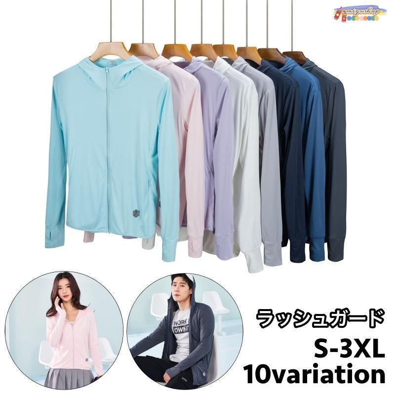 ラッシュガード 長袖 羽織り ラッシュパーカー レディース メンズ 薄手 フード付き UVカット 紫外線対策 日焼け防止 夏 大きいサイズあり シンプ