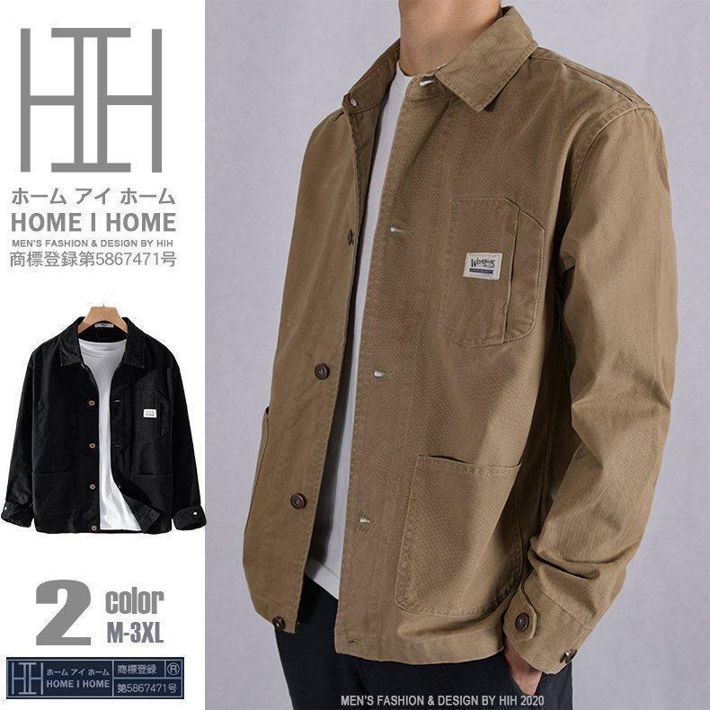 アウター カバーオール メンズ 無地 綿100% シンプル ブルゾン 作業服 ワーク 秋 シャツジャケット