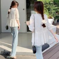 マタニティ セットアップシャツ 半袖 レディース ワイトパンツ ママ 大きいサイズ 2点セット妊婦服