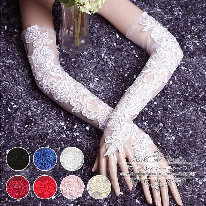 7色 ウエディンググローブ ロンググローブ ウェディング ブライダル 結婚式 花嫁 二次会 パーティー レース 花 黒 赤 ピンク ブルー