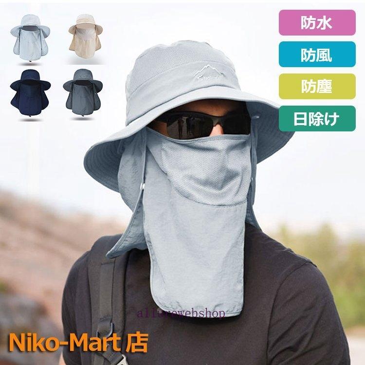 サファリハット UPF50 UVカット率99.9% 撥水 防汚機能 3way 360度日よけカバー メッシュ素材 通気性抜群 つば広 あご紐付き