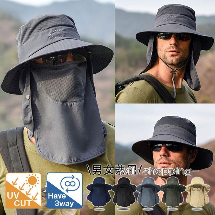 サファリハット バケットハット メンズ 日除け uvカット 日焼け防止 首の日焼け防止 フェイスマスク サンバイザー つば広帽子 紫外線対策