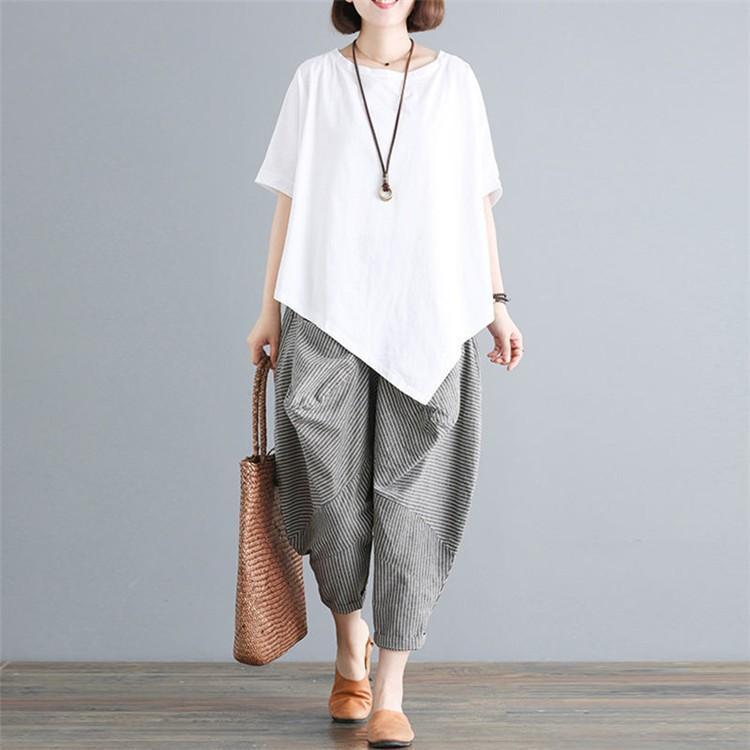 パンツ セットアップ レディース tシャツ ブラウス トップス ガウチョパンツ サルエルパンツ 九分丈 2点セット ゆったり 大きいサイズ カジュアル