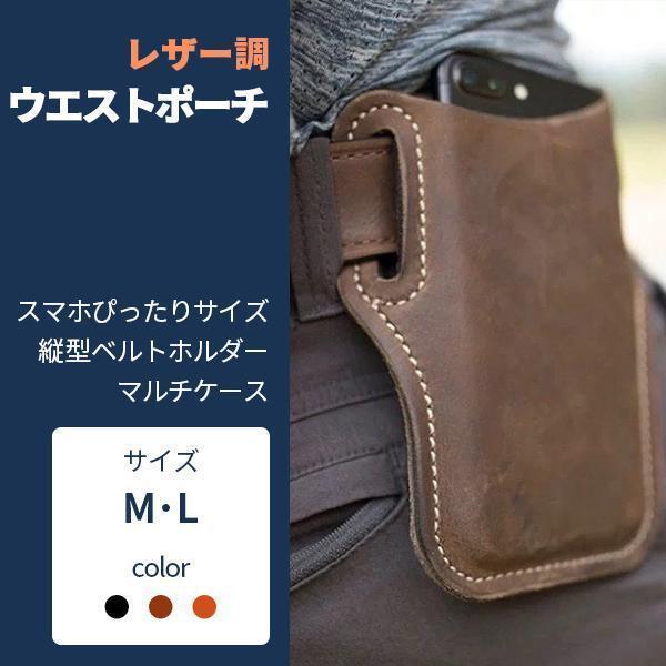 ウエストポーチ レザー調スマホケース ベルトホルダー縦型 マルチケース スマホポーチ 腰につける