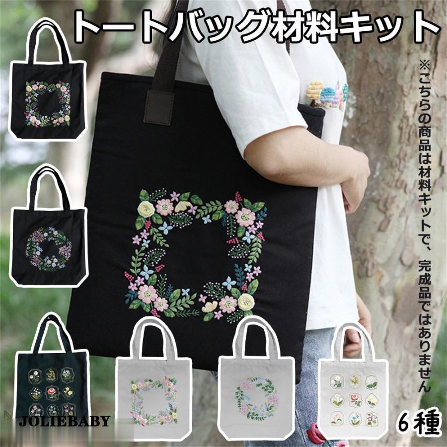 刺繍トートバッグ材料キット 手芸材料セット 手作り エコバッグ 花 植物 刺繍枠 刺繍針 図案 トートバッグ 刺繍糸セット 中級者向け おうち時間
