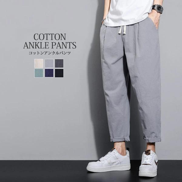 綿100% アンクルパンツ メンズ ボトムス ウエストゴム くるぶし サルエル テーパード春 夏