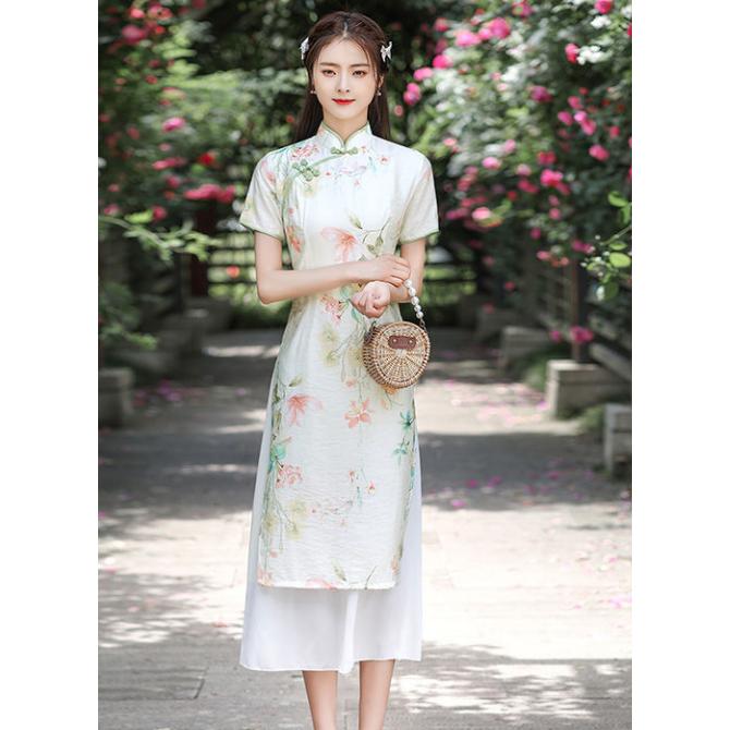 チャイナドレス ベトナム アオザイ ロング レディース チャイナ服 アオザイ 7分袖 ステージ衣装 ドレス 結婚式 おしゃれ コスプレ コスチューム花柄 チャイナ風 ワンピース チャイナ服 コスプレ衣装 パーティードレス ハロウィン 結婚式 披露宴オシャレ 30代40代